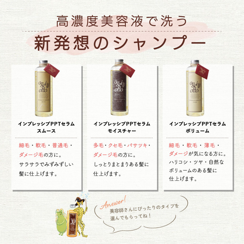 特にoggi ottoのシャンプーやトリートメントを使ってもらうとより良さが実感できると思います♪