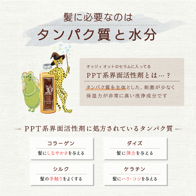 ちなみにシャンプーは「魔法のシャンプー」なんて謳っていて、成分の40%以上が髪の栄養分(PPT活性剤)で構成されています。高濃度美容液処方なので、すぐ流さないで泡パックをしばらくしてあげるとかなり良い感じになります。